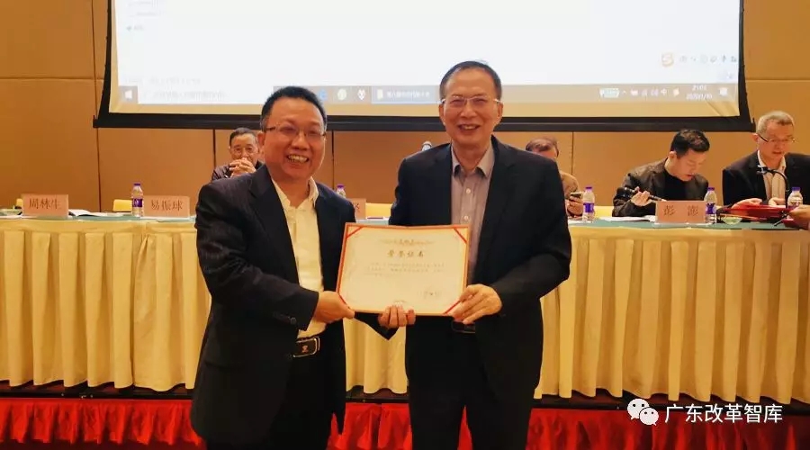 廣東省體制改革研究會(huì)名譽(yù)會(huì)長(zhǎng)、省人大原副主任陳堅(jiān),名譽(yù)會(huì)長(zhǎng)、原廣東省體改委主任易振球出席第八屆會(huì)員代表大會(huì),為第八屆理事會(huì)選舉的會(huì)長(zhǎng)、執(zhí)行會(huì)長(zhǎng)、副會(huì)長(zhǎng)、秘書長(zhǎng)、監(jiān)事頒發(fā)證書。周林生會(huì)長(zhǎng)為高級(jí)顧問頒發(fā)了聘書。