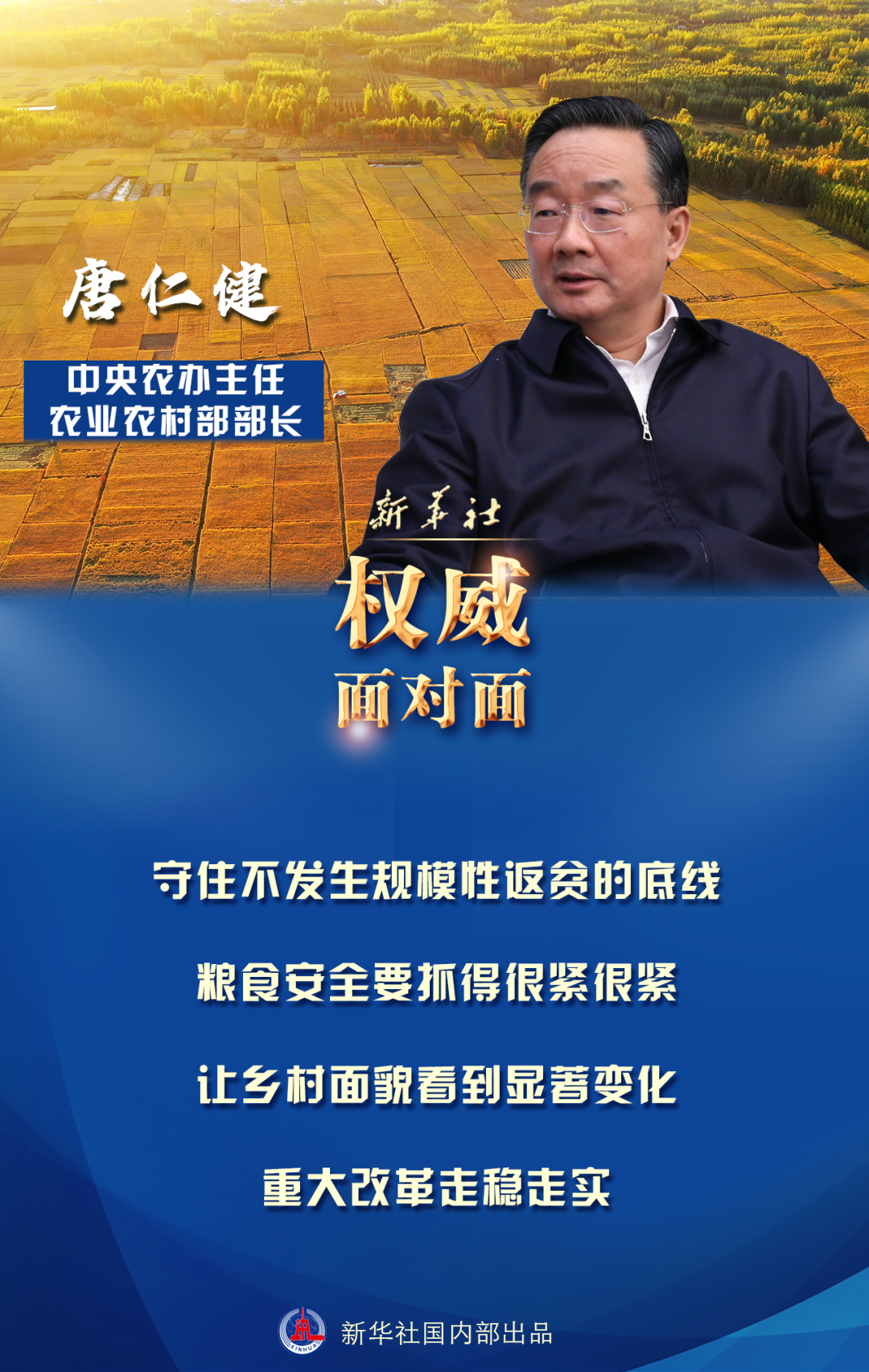 ?習(xí)近平總書記在中央農(nóng)村工作會議上強調(diào),全黨務(wù)必充分認(rèn)識新發(fā)展階段做好“三農(nóng)”工作的重要性和緊迫性,堅持把解決好“三農(nóng)”問題作為全黨工作重中之重,舉全黨全社會之力推動鄉(xiāng)村振興,促進(jìn)農(nóng)業(yè)高質(zhì)高效、鄉(xiāng)村宜居宜業(yè)、農(nóng)民富裕富足。近日,中共中央、國務(wù)院印發(fā)《關(guān)于全面推進(jìn)鄉(xiāng)村振興加快農(nóng)業(yè)農(nóng)村現(xiàn)代化的意見》,也就是2021年中央一號文件。文件公開發(fā)布之際,中央農(nóng)辦主任、農(nóng)業(yè)農(nóng)村部部長唐仁健就文件貫徹落實等相關(guān)問題回答了記者的提問。