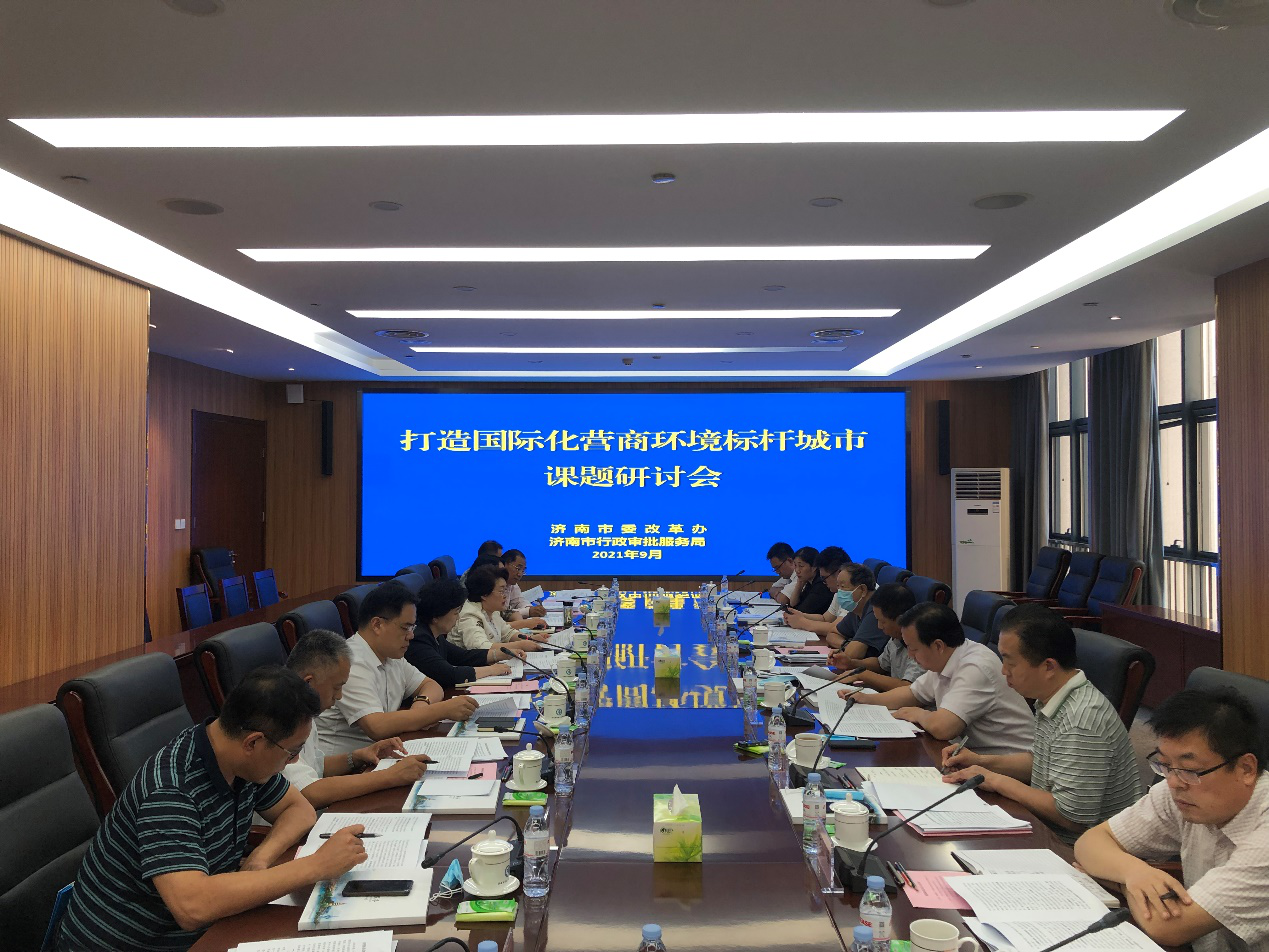15日至17日,課題組調(diào)研濟南“深化放管服改革打造國際化營商環(huán)境標桿城市”課題期間,走訪了歷下區(qū)、市中區(qū)、章丘區(qū)、濟南高新區(qū)、中國(山東)自由貿(mào)易試驗區(qū)濟南片區(qū),重點考察了山東產(chǎn)業(yè)技術(shù)研究院、齊魯制藥集團有限公司、神思電子技術(shù)股份有限公司,在濟南市行政審批服務(wù)局、龍奧大廈分別召開課題研討會。濟南市委副秘書長、政研室主任、改革辦副主任任廣鋒,濟南市行政審批服務(wù)局黨組書記趙壽娟,濟南市行政審批服務(wù)局局長劉霞,濟南市委政研室副主任常建法,濟南市委改革辦專職副主任謝金嶺,濟南市委改革辦督促指導(dǎo)處處長謝永昌,濟南市委改革辦副處長劉耐群,以及濟南市發(fā)展改革委、濟南市行政審批服務(wù)局、濟南市自然資源和規(guī)劃局、濟南市住房城鄉(xiāng)建設(shè)局、濟南市市場監(jiān)管局分管負責同志,歷下區(qū)、歷城區(qū)區(qū)委改革辦有關(guān)負責同志參加課題研討會。