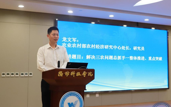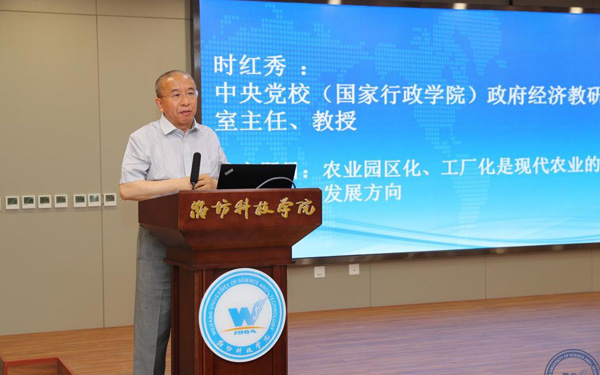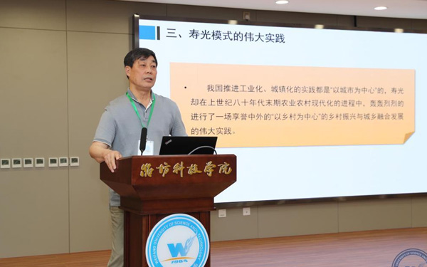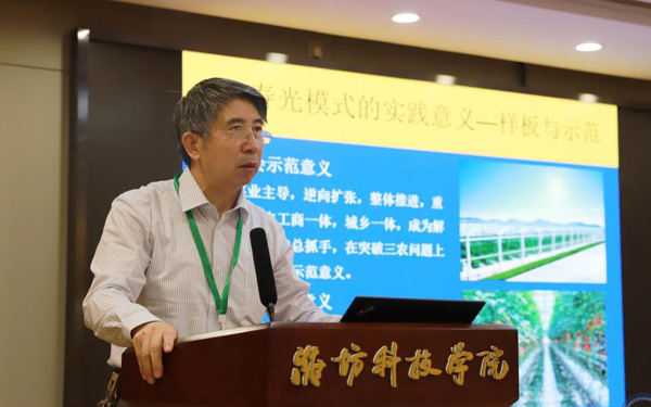 壽光市人大常委會(huì)副主任、濰坊科技學(xué)院校長(zhǎng)李昌武在致辭中表示,濰坊市委副書(shū)記、壽光市委書(shū)記林紅玉同志在全市三級(jí)干部會(huì)議上,對(duì)我校提出全面提升辦學(xué)水平,提高社會(huì)服務(wù)能力,加快推進(jìn)碩士點(diǎn)培育建設(shè)的要求。為落實(shí)林書(shū)記講話(huà)要求,加強(qiáng)區(qū)域經(jīng)濟(jì)和“壽光模式”研究,壽光市人民政府與中國(guó)經(jīng)濟(jì)體制改革研究會(huì)等聯(lián)合成立的“新時(shí)代鄉(xiāng)村振興與區(qū)域經(jīng)濟(jì)發(fā)展研究院”掛靠學(xué)院,引進(jìn)了大批高層次人才,形成了一批富有創(chuàng)造性、建設(shè)性的學(xué)術(shù)研究成果和決策咨詢(xún)意見(jiàn),“壽光模式”研究成果在國(guó)家發(fā)改委《改革內(nèi)參》刊發(fā)。成立了國(guó)家二級(jí)學(xué)會(huì)農(nóng)學(xué)思想與《齊民要術(shù)》研究會(huì),連續(xù)成功舉辦了10屆中華農(nóng)圣文化國(guó)際研討會(huì),師生原創(chuàng)52集動(dòng)畫(huà)片《農(nóng)圣賈思勰》在中央電視臺(tái)和山東衛(wèi)視播出。學(xué)校組建了博士、教授農(nóng)學(xué)科研服務(wù)團(tuán)隊(duì),成立了蔬菜產(chǎn)業(yè)學(xué)院、農(nóng)業(yè)技術(shù)培訓(xùn)基地,自主研發(fā)蔬菜品種28個(gè),在全國(guó)7個(gè)省區(qū)建立了育種基地,開(kāi)發(fā)運(yùn)營(yíng)了壽光市農(nóng)業(yè)智慧監(jiān)管服務(wù)公共平臺(tái),打造了覆蓋設(shè)施農(nóng)業(yè)全產(chǎn)業(yè)鏈的專(zhuān)業(yè)服務(wù)體系,為創(chuàng)新提升“壽光模式”和鄉(xiāng)村振興戰(zhàn)略的實(shí)施提供了有力支撐。