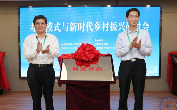 5月25日-26日,由中國(guó)經(jīng)濟(jì)體制改革研究會(huì)、中國(guó)經(jīng)濟(jì)改革研究基金會(huì)、壽光市委市政府聯(lián)合主辦的“壽光模式與新時(shí)代鄉(xiāng)村振興”研討會(huì)在壽光市農(nóng)圣文化學(xué)術(shù)交流中心舉行。與會(huì)專(zhuān)家聽(tīng)取了“壽光模式”研究課題組成果匯報(bào),開(kāi)展了熱烈研討,并到三元朱村、菜博會(huì)、全國(guó)蔬菜質(zhì)量標(biāo)準(zhǔn)中心等地進(jìn)行了實(shí)地調(diào)研。新時(shí)代鄉(xiāng)村振興與區(qū)域經(jīng)濟(jì)發(fā)展研究院、中國(guó)經(jīng)濟(jì)體制改革研究會(huì)博士后科研工作站壽光分站、人民網(wǎng)山東頻道調(diào)研基地”同期揭牌。