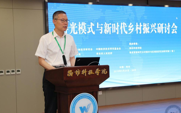 新時(shí)代鄉(xiāng)村振興與區(qū)域經(jīng)濟(jì)發(fā)展研究院執(zhí)行院長(zhǎng)、經(jīng)濟(jì)管理學(xué)部主任、教授、博士生導(dǎo)師張友祥代表“壽光模式”研究課題組從“壽光模式”的內(nèi)涵和特征、形成機(jī)制、實(shí)踐價(jià)值等方面作了研究成果匯報(bào)。