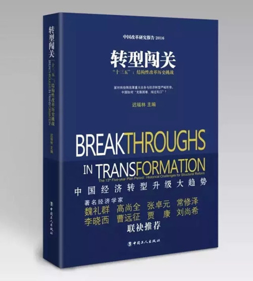 2016年2月25日,由中國(海南)改革發(fā)展研究院(以下簡稱中改院)、中國工人出版社主辦的《轉(zhuǎn)型闖關(guān)——“十三五”:結(jié)構(gòu)性改革歷史挑戰(zhàn)》新書發(fā)布會在京舉行。中國行政體制改革研究會會長、中改院董事局主席魏禮群,原國家體改委副主任、中改院名譽院長高尚全,中國經(jīng)濟體制改革研究會顧問宋曉梧,全國人大常委員會委員、外事委員會副主任委員趙白鴿,中國社會科學院學部委員張卓元,商務(wù)部原部長助理黃海,國家發(fā)展和改革委員會經(jīng)濟研究所教授常修澤,北京師范大學校學術(shù)委員會副主任李曉西,中銀國際研究公司經(jīng)濟學家曹遠征等專家出席本次發(fā)布會。