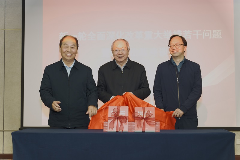 彭森、趙艾、陳光耀共同為《黨的十八大以來(lái)全面深化改革的實(shí)踐與進(jìn)展》岀版發(fā)行揭幕。我會(huì)科研部主任南儲(chǔ)鑫就《黨的十八大以來(lái)全面深化改革的實(shí)踐與進(jìn)展》課題研究及新書編輯岀版背景、過(guò)程等作了介紹。我會(huì)公共政策部主任諶利民研究員代表參與研究及撰稿人員發(fā)言。