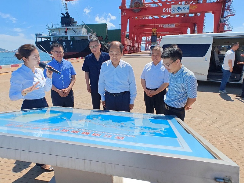 在連云港市調(diào)研期間,趙艾一行在市發(fā)展改革委組織召開的座談會上,聽取了市發(fā)展改革委、科技局、工信局、交通局、商務(wù)局、江蘇海洋大學(xué)、港口集團有關(guān)負(fù)責(zé)同志關(guān)于連云港市今年以來經(jīng)濟社會發(fā)展、參與共建“一帶一路”、培育和發(fā)展新質(zhì)生產(chǎn)力等方面的有關(guān)情況介紹。趙艾一行還到“一帶一路”供應(yīng)鏈基地、連云港港集裝箱碼頭、中哈(連云港)物流合作基地、整車出口基地和智能立體車庫、石化基地運管中心、盛虹煉化一體化項目中控中心、中國船舶第七一六研究所等實地調(diào)研了解情況。連云港市政協(xié)副主席、市發(fā)展改革委主任韋懷余,市發(fā)展改革委黨組成員、軍民融合辦副主任樊繼強,市重大辦主任侍華林等出席座談會并陪同調(diào)研。