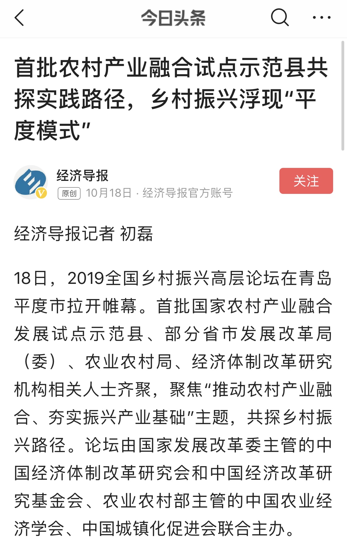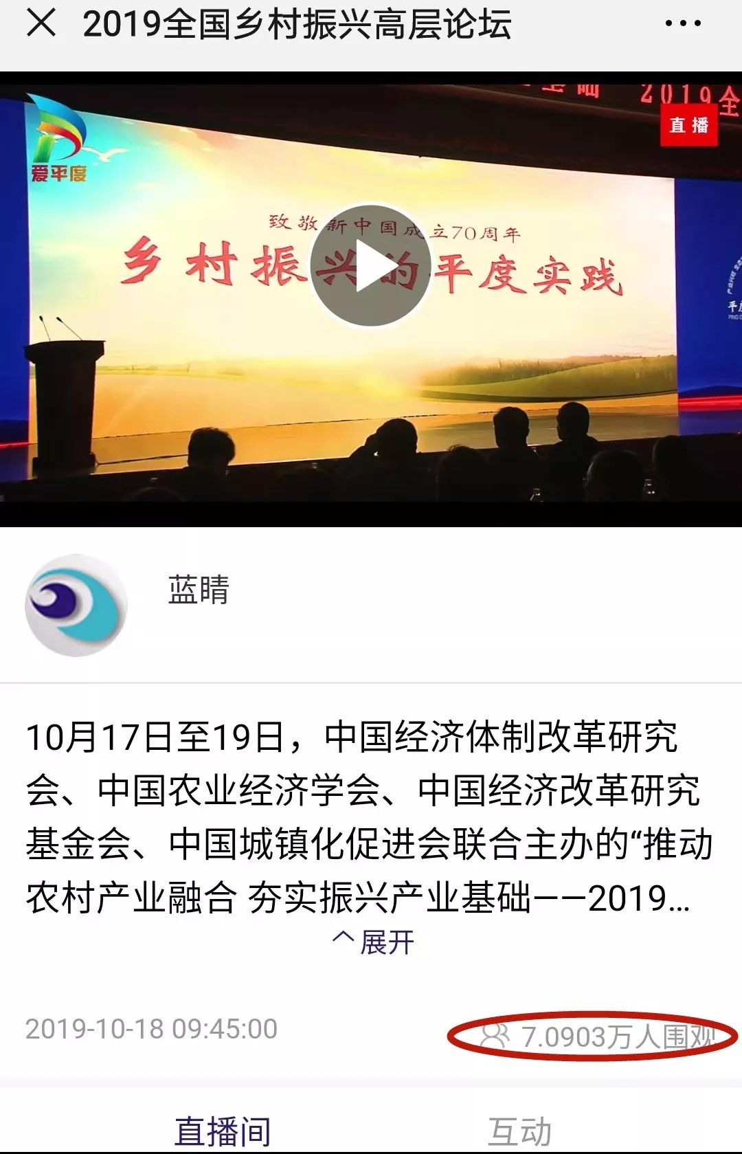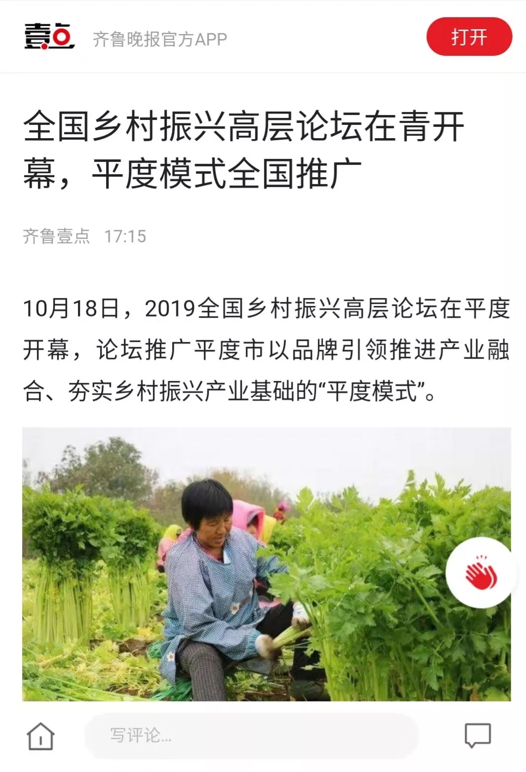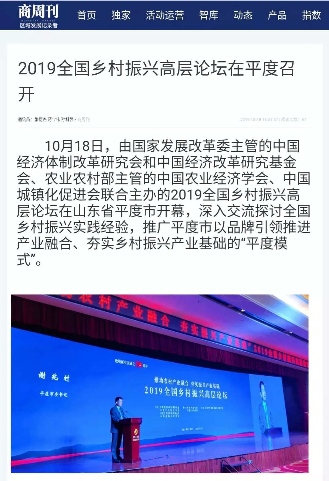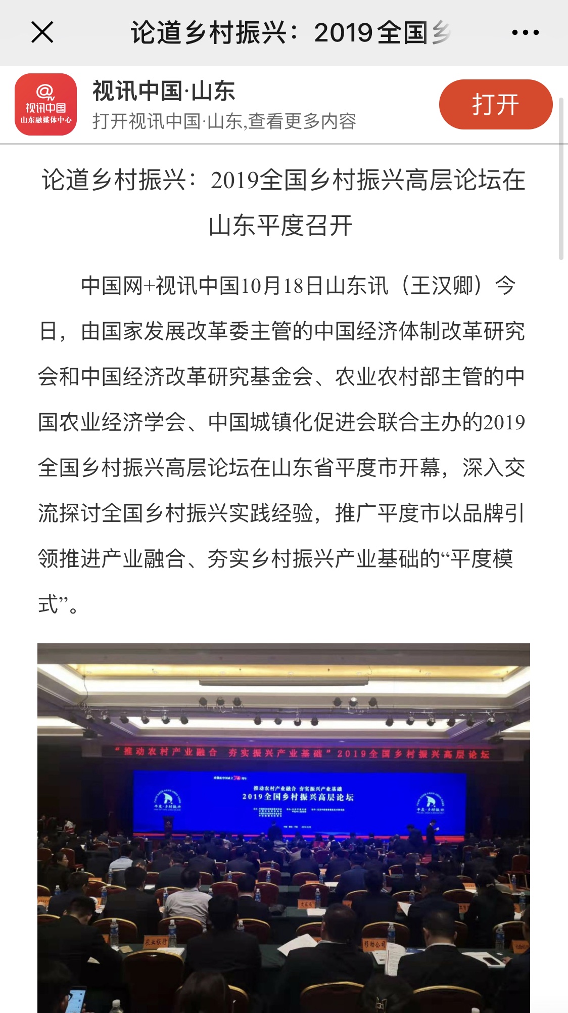這場在平度舉行的國家級高層論壇受到各級新聞媒體聚焦關(guān)注,中央廣播電視總臺、人民日報、新華社、經(jīng)濟日報、農(nóng)民日報、中國經(jīng)濟時報、山東廣播電視臺、大眾日報、青島廣播電視臺、青島日報等20余家媒體記者到現(xiàn)場采訪報道。10月18日上午,青島廣播電視臺藍睛客戶端現(xiàn)場直播論壇盛況,在線觀看已突破7萬人次。目前,新華社、人民網(wǎng)、鳳凰網(wǎng)、青島廣播電視臺、青島日報、齊魯晚報、青島早報、青島晚報、半島都市報、商周刊、大眾網(wǎng)、中國山東網(wǎng)、青島新聞網(wǎng)等10余家媒體第一時間已刊發(fā)相關(guān)報道。